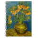 Carnet mettant en vedette les frégates impériales à l’huile de Vincent van Gogh dans un vase de cuivre (1887). De belles fleurs jaunes ornent un vase sur fond bleu. Un cadeau fabuleux pour les amateurs de post-impressionnisme et d'art hollandais !