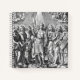 Dans cette gravure de ciel par Hieronymus [Jérôme] Wierx de c. 1600, l'accent est mis sur les Archanges. + Les Sept Archanges, leurs noms inscrits dans leurs halos, sont représentés avec leurs attributs. En lisant de gauche à droite, les Archanges sont les suivants : Saint Raphaël ("Dieu guérit") porte un pot d’apothicaire et tient la main de la jeunesse Tobias qui porte un poisson. Avec une salve à base d’intestin de poisson, St. Raphael guérit le père de Tobias de la cécité et sa future épouse de la possession d’un démon. Uriel (ou Ariel, "Dieu est ma lumière") brille une épée. Il aurait peut-être expulsé Adam et Eve du jardin d'Eden après la chute. Une flamme brûle à ses pieds. Saint Gabriel ("Force de Dieu") est habituellement représenté avec un spray de lys. Ici, cependant, il porte une lanterne qui rebondit la lumière d'un miroir de jasper. La lanterne symbolise la Parole de Dieu, et le miroir du jasper, un minéral aux occlusions qui prend néanmoins un éclat réfléchissant lorsqu’il est poli, symbolise notre compréhension erronée de la nature de Dieu. Au centre, un saint Michel haut vêtu d'armures ("Qui est comme Dieu ?") porte un étalon de bataille et une paume de victoire. Il écrase Lucifer sous le couvert d'un dragon. Sealtiel ("Prière pour Dieu"), ici les yeux levés, plie ses mains dans la prière devant sa poitrine. Jehudiel ("Justice de Dieu") porte une couronne et un fléau (équivalent céleste d’une carotte et d’un bâton). Et, enfin, Barachiel ("Bénédictions de Dieu") tient un pli de son manteau rempli de fleurs pour la diffusion ou la distribution. + La gravure a été inspirée par deux passages bibliques : Apoc. 1:4 et Psaume 137:1-2—qui apparaissent en latin sous l'image sur l'impression originale (non visible dans ce détail). + Fête conjointe de SS. Michael, Gabriel, et Raphael : 29 septembre + Crédit image (M 034) : Détail d'une gravure ancienne de la Renaissance du Nord flamande de St. Michael et Archangels (Les Sept Archanges), par Hieronymus [Jérôme] Wierx, publiée avec privilège par Piermans, Anvers, Belgique, c. 1600, du Metropolitan Museum of Art, The Elisha Whittelsey Collection, The Elisha Whittelsey Fund, 1951, 51.501.6402. Creative Commons CC0 1.0 Universal Public Domain Dedication.