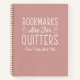 Ce joli design nerdy pour les amateurs de livres, de livres, d'auteurs, d'écrivains, d'amis de club de livres ou de lecteurs avide présente la citation drôle "Signets Are For Quitters" avec deux petites illustrations de livres sur un arrière - plan rose rose poussiéreux. Personnalisez-vous avec une ligne de texte personnalisé en dessous; parfait pour votre nom de club de livres, librairie ou nom d'événement. Offrez à un ami du club de lecture, à un bibliothécaire de l'école de votre enfant, à un spécialiste de la bibliothèque, à un spécialiste de la lecture ou à un diplômé en sciences de la bibliothèque ce joli design pour la journée ou la semaine d'appréciation des enseignants, la fin de l'année scolaire ou les jours fériés.