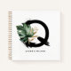 Carnet monogramme Q personnalisé avec aquarelle feuille de monstère tropicale, fausse feuille de feuille d'or et accents de brosse d'aquarelle noire. Personnalisez ce carnet de monogramme tropical par votre nom ou d'autres détails. Ce carnet de monogramme de lettre Q boho sera parfait comme cadeau. D'autres lettres sont disponibles.