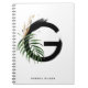 Carnet monogramme de lettre G personnalisable avec aquarelle feuille tropicale, fausse feuille d'or et accents de brosse d'aquarelle noire. Personnalisez ce carnet de monogramme tropical en ajoutant votre nom ou d'autres détails. Ce carnet monogramme de lettre G boho sera parfait comme cadeau. D'autres lettres sont disponibles.