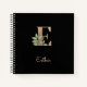 Le carnet noir élégant est doté d'un monogramme botanique doré au centre.