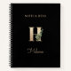 Un élégant porte - bloc noir est doté d'un monogramme botanique en or au centre.