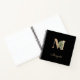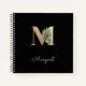 Le carnet noir élégant est doté d'un monogramme botanique doré au centre.