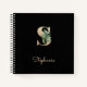 Le carnet noir élégant est doté d'un monogramme botanique doré au centre.