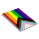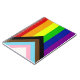 La variante "Progress" du drapeau arc-en-ciel ajoute un chevron le long de l'arbre qui présente des rayures noires, marron, bleu clair, roses et blanches pour amener ces communautés (les personnes marginalisées de couleur, les personnes trans, les personnes vivant avec le VIH/SIDA et celles qui ont été perdues) au premier plan ; "la flèche pointe à droite pour montrer le mouvement, tout en étant le long du bord gauche, montre que des progrès restent à faire."