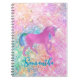 Carnet Licorne arc-en-ciel rose mignonne monogramme paill