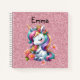 Une licorne bébé magique colorée entourée de fleurs est mignonne sur ce cahier spiralé pour enfants. Sur un fond rose pailleté. Ce livre peut être personnalisé avec l'outil en ligne pour ajouter un nom, des initiales ou un texte de votre choix. Conception fantaisiste.
