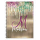Carnet Licorne dorée mignonne monogramme Drips Glitter