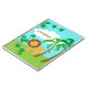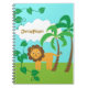 Ce carnet personnalisé a une conception d'enfants mignons comporter un lion, deux palmiers, nuage blanc, vignes et feuille sur un arrière - plan turquoise. Le texte personnalisable vous permet d'ajouter un nom.