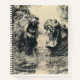 Ce carnet a un lion qui combat un hippo représenté dessus.