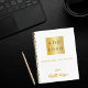 Fond blanc, texte doré. Personnalisez et ajoutez votre entreprise, logo de société, un texte, année et nom personnel. Si vous le souhaitez sans texte, utilisez votre touche de retour arrière pour supprimer.