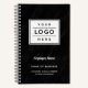 Ajoutez un aspect professionnel à votre espace de travail avec un carnet en spirale personnalisé de marque de l'entreprise, doté d'un grand espace pour votre logo d'entreprise, avec un texte personnalisé moderne qui peut être personnalisé avec le nom de l'employé ou du propriétaire de l'entreprise, le nom d'entreprise, l'emplacement, le slogan, le site Web ou d'autres informations. Fait un grand cadeau d'entreprise. Comprend un arrière - plan en marbre Carrera faux noir qui est imprimé sur les couvertures avant et arrière.
