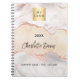La couverture comporte un fond en marbre d'agate or rose et blanc avec votre logo d'entreprise, votre nom et un texte.