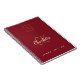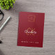 Un fond rouge. Personnalisez et ajoutez votre logo d'entreprise, vos initiales de monogramme, votre nom et un titre. Lettres dorées et blanches.