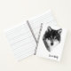 Portrait animal en noir et blanc de loup gris Canis lupus. Un élégant carnet en spirale pour tous. Personnalisable . Vous pouvez modifier ou supprimer un texte sous l'image. Vous pouvez transférer cette conception à un autre produit de votre choix, il suffit d'utiliser une option à droite de cette description.