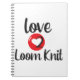 Carnet de l'artisan "Love 2 Loom Knit" Les artisans font toujours des choses, mais parfois ils oublient comment ils les ont faites. C'est une idée de cadeau génial pour Knitters, Crochet, Loom Knitters point de croix, ils peuvent utiliser ce Carnet pour prendre des notes sur leurs projets. Comme le type de fil utilisé, la taille des crochets, des points de suture et l'information du motif. Tout ce dont vous avez besoin de vous souvenir sur votre projet, tout à l'intérieur d'un carnet, rend facile de faire un autre article sans que toutes les devinettes fonctionnent. Idéal pour mettre la liste de projets shopping.