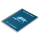 Un loup bleu stylisé (Canis lupus) projette une ombre en traversant un terrain enneigé. Vous pouvez ajouter votre propre texte à deux endroits.