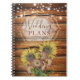 Commencez votre planification de mariage avec ce beau cahier rustique. Ce design présente un fond en bois de grange rustique, des lumières de chaîne et des tournesols. Ajoutez simplement vos noms et vous êtes prêt. Si facile !