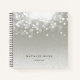 Le carnet chic est orné d'un arrière - plan gris argenté orné d'un éclat de lumières de livres blancs au sommet. Personnalisez avec deux lignes de texte personnalisé le long du bas en lettres noires classiques.