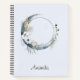 Carnet spiral avec une illustration mystique. Une lune bleu foncé avec un contour élégant en cercle mince et des fleurs blanches fleurissent le long de ses bords.