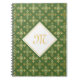 Un luxueux carnet de motifs floraux quatre points vert et or qui peut être personnalisé en ajoutant votre monogramme. Ce design vintage monogrammed damask élégant vous fera découvrir votre côté sophistiqué. Impression plane, pas métallique.