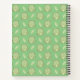 Sur le devant se trouve une grenouille verte kawaii à l'intérieur d'un carré jaune sur un fond vert. Au-dessus de la grenouille, on lit Mes Notes tandis qu'en dessous, il y a un espace pour votre nom. Ces deux éléments sont des modèles que vous pouvez utiliser pour personnaliser ce design. Au dos se trouve un motif répétitif de la même grenouille avec des feuilles vertes sur un fond vert.