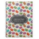Un cahier personnalisé avec un motif mignon de macarons de différentes couleurs avec un motif subtil à points derrière. Un cadre décoratif gris et blanc de style vintage élégant avec votre texte à l'intérieur.