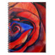with original art design from watercolour painting by Sacha Grossel of large, close focus, macro style red rose with blue highlights. This traditional English flower with crimson petals has a bright, intense colour design that conveys the abstraction of the botanical form and themes of love and passion.