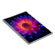 Stellar Burst explodes from a blazing yellow-orange core through hot pink into electric blue tips, dusted with glittering, cosmic droplets. This radiant macro art captures a supernova-like energy in stunning botanical detail