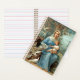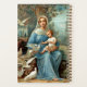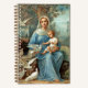 Le carnet religieux de la Madone Bleue Française présente une image d'une belle carte sainte française antique imprimée à la fin du XIXe siècle. Jésus et la Bienheureuse Mère sont entourés de colombes blanches et d'un paysage boisé brumeux. L'image bleu et aqua est imprimée sur les couvertures avant et arrière.