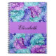 Ce carnet présente de magnifiques fleurs d'hydrangée associées à un motif fleuri et luxuriant. Pour tous les amateurs de fleurs ! Couleurs en turquouise, lavande, bleu. Texte et couleur personnalisés !