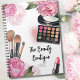 Éclatant de couleurs vives et de fleurs fantaisistes, cette impression est un festin visuel parfait pour les artistes maquilleurs, les blogueurs beauté, les influenceurs et tous ceux qui recherchent une touche d'élégance florale colorée avec une touche de glamour. Caractéristiques : pivoines roses vives, palette de maquillage, pinceaux de maquillage et rouge à lèvres. Vous pouvez personnaliser tout le texte. Cahier de l'artiste maquilleur floral aquarelle cosmétique