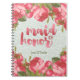 Blanc et pâle vintages - carnet de notes à spirale de domestique-de-honneur vert de dentelle avec les roses roses et la calligraphie. Personnalisé.