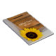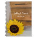 Personnalisez le Carnet Spiral du Mariage campagnard Rustic Sunflower et Veil, décontracté mais élégant, pour créer un livre d'or unique pour votre mariage à la ferme ou au ranch ou un livre de conseils pour la mariée et le marié marié. Cet élégant et informel livre de notes de mariage rustique chic et artisanal présente une photographie florale surannée d'une fleur de soleil jaune et un voile de mariée blanc avec un arrière - plan en bois de grange patiné brun.