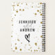Customisez ce design élégant et organisez-vous pour votre journée spéciale. Calligraphie noir et or sur un arrière - plan blanc avec confettis d'or et poussière de parties scintillant. Changez de nom et de date et vous avez le journal de puces mariage parfait.