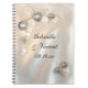 Le joli Carnet Spiral Mariage Faux White Pearl and Diamond Buttons peut être personnalisé avec les noms de la mariée et du marié et la date spécifique de la cérémonie de mariage créer un livre d'invité ou un livre de conseils classe pour les jeunes mariés. Ce carnet de notes de mariage customisé comprend une photographie d'une variété de perles à l'aspect vintage et de boutons en diamant avec un arrière - plan satiné blanc.