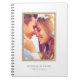 Il s'agit d'un carnet photo commémoratif conçu pour permettre aux mariées et aux mariés de garder des notes sur leurs projets de mariage à venir. Gardez tous les éléments essentiels en un seul endroit, comme les réunions, les dates, les coûts, les lieux, les listes d'invités et de mariés, les arrangements de table, les options d'emplacement de lune de miel et toutes vos autres pensées et ressources qui rendront votre journée spéciale. Le carnet dispose d'un cadre de parties scintillant en faux or sur un arrière - plan blanc propre, personnalisable et photo.