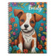 Carnet personnalisé. Adorable art de l'air blanc avec un chien chiot brun et blanc entouré de fleurs d'art populaire en rose, orange et violet.