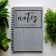 Light grey denim fabric print, large 'notes' title in modern calligraphy lettering and minimalist name are featured on this classic spiral notebook, journal, planner. The double border & text are black. Easily change the name to make it yours using the Template provided. To edit and change font style, font color, size and more-- use the Design Tool. This notebook contains 80 pages, college lined in black and measures 6.5" x 8.75". Excellent reviews.