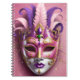 Illustration d'un masque de carnaval coloré sur carnet arrière - plan rose.