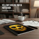 "Ce design est doté d'un masque jaune vif, qui semble souriant, avec de grands trous oculaires, foncés et couverts de maille. Le contraste entre l'expression joyeuse et les yeux obscurcis crée un effet troublant et intrigant. La texture lisse du masque ajoute à sa qualité énigmatique. Ce design est polyvalent pour les produits visant une esthétique mystérieuse, théâtrale ou légèrement étrange. Imaginez-le sur des vêtements, des affiches, des accessoires ou des décors de maison qui explorent des thèmes d'identité, d'anonymat, ou l'étrange."