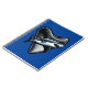 Ce logo qui commande capture l'essence du Megalodon préhistorique, encadré dans la silhouette emblématique d'une dent de requin. Le Megalodon est illustré avec des détails saisissants dans une palette de bleus profonds et de blancs contrastés, en mettant l'accent sur sa taille et sa puissance formidable. Ses mâchoires sont ouvertes dans une démonstration de puissance, révélant un éventail impressionnant de dents. La silhouette de la dent offre un contour audacieux qui améliore l'impact global du design, symbolisant à la fois la force ancienne et l'héritage durable de cette créature légendaire. L'utilisation d'un fond noir profond permet aux accents métalliques sur le corps de Megalodon de se démarquer, créant un emblème élégant et contemporain qui véhicule domination, résilience et présence dominante.