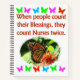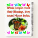 Cette infirmière dévouée va chérir ce beau papillon "Quand les gens comptent leurs bénédictions, ils pourraient Nurses deux fois" photo design de www.zazzle.com/myheavenlyblessings Votre infirmière numéro un chérira ce design de soins infirmiers appréciable sur les Tee - shirts, les tasses, les articles de boisson, le décor de la maison et de beaux cadeaux. Faites savoir à votre délicieuse infirmière qu'elle veut dire le monde pour vous et qu'elle est un ange envoyé de Dieu. Tous nos modèles de soins infirmiers peuvent être customisés et personnalisés avec un nom, une date ou un événement. Ce précieux cadeau d'infirmière est parfait pour les vacances, les anniversaires et toutes les occasions.