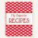 Design mignon avec une nappe à damiers rouge et blanche et la légende "Mes recettes favorites". Le texte peut facilement être changé.