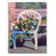 Écrivez vos notes importantes dans ce carnet artistique coloré qui incorpore des jaunes, des rouges, des verts, des bleus et des lavendars pour votre plaisir de visionner. J'ai fait ce petit tableau d'une chaise de jardin avec un pot de fleurs colorées assis dessus. Au-delà de notre patio et de nos banquettes se trouvent des arbres et des buissons aux couleurs complémentaires. Conçu exclusivement à partir d'une peinture acrylique originale de l'artiste professionnel Daniel Fishback.