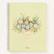 Un carnet vert clair avec des fleurs blanches et jaunes crémeuses dessinées à la main et de couleur lâche pour les écolières.