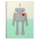 Carnet comportant un robot mignon avec un coeur sur un arrière - plan vert et jaune pâle en bon état.