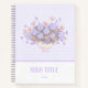 Un carnet mignon avec des fleurs violettes dessinées à la main, plus ou moins colorées, aux couleurs pastel pour les écolières.
