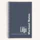 The Minimal Grey White Logo Motto Fitness Workout Notebook, part of the "Grey & White Fitness Business Cards & Marketing" Collection, has a professional grey cover with a custom company logo and in bold typography the notebook or journal purpose along the vertical border. And underneath the logo is a placeholder for a tagline or company name.